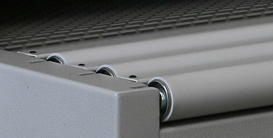 Check control sul pannello, rulliera anteriore e posteriore sagomata a 3+3 rulli gommati ,motore traino tappeto a due velocità selezionabili da pannello, avviamento motore stella triangolo automatico , controllo elettronico dei nastri