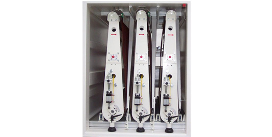 Check control sul pannello ,motore traino tappeto a due velocità selezionabili da pannello,calibro misurazione spessore pezzo e visualizzatore digitale della quota,