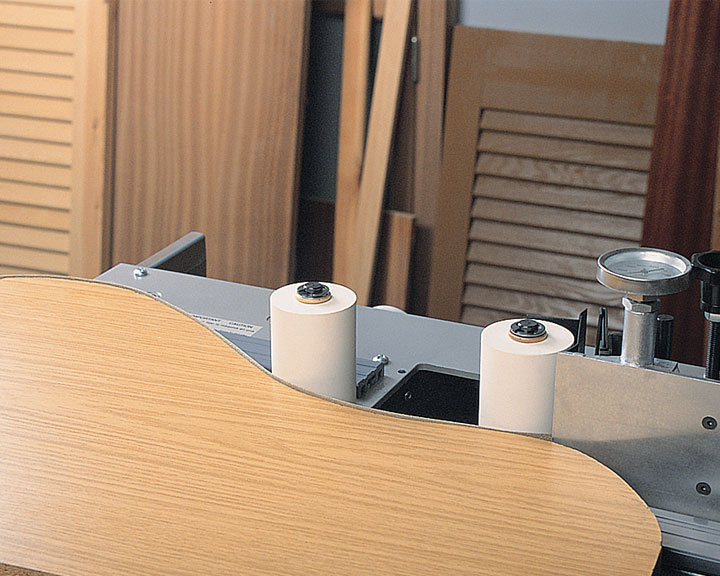 Studiata appositamente per la bordatura di bordi preincollati in P.V.C., poliestere, melaminico e legno fino a 1 mm di spessore.