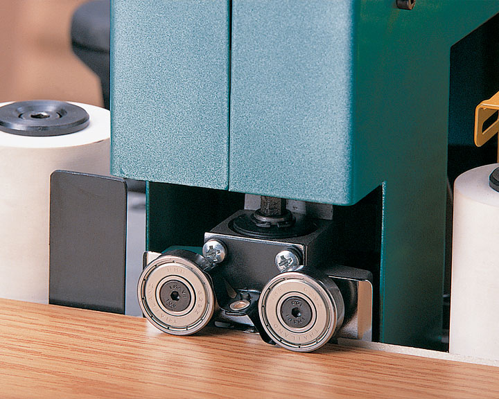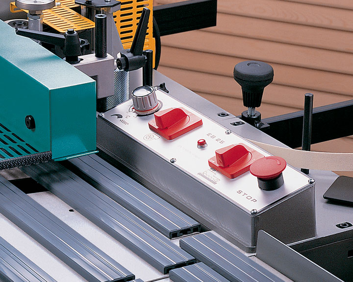 Bordatrice per bordi preincollati in PVC, melaminici e legno. Dotazione: alimentatore automatico del bordo, intestatore iniziale e finale, rifilatore doppio motorizzato e avanzamento automatico del pannello. Regolazione elettronica della temperatura. Tempo di riscaldamento 30 secondi. Rapida preparazione (pronta all’uso in meno di due minuti). Uso e manutenzione molto semplici. Base larga con guide speciali per l’allungo.
