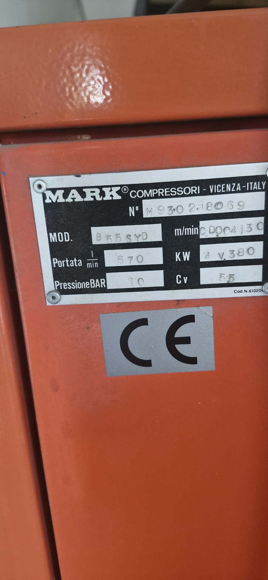 COMPRESSORE 5,5 Cv, PORTATA 670 l/min, pressione 10 bar