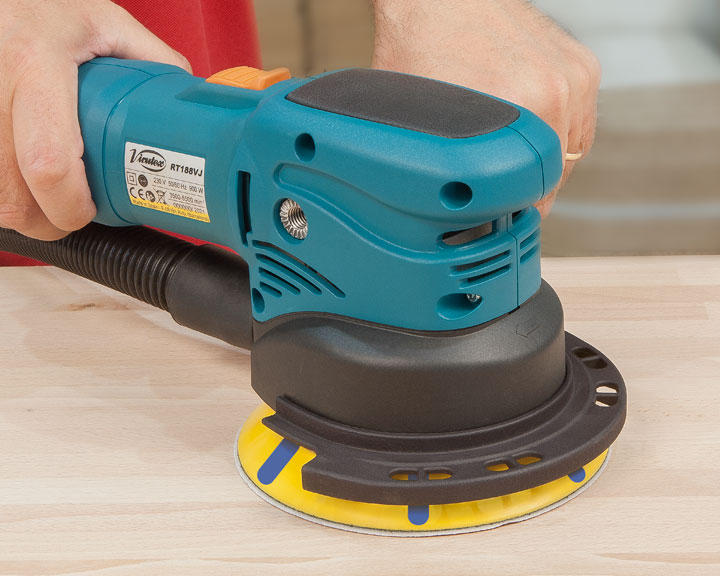 Ideale nei lavori di carrozzeria nella pulitura di lastra metallica o laminati di legno. Orbita da 5 mm per una gran qualità di levigatura. Equipaggiata con platorello flessibile che permette di lavorare comodamente su superfici curve. Grazie allo speciale disegno dei fori d’aspirazione permette l’uti-lizzazione della maggior parte degli abrasivi standard. Eqipaggiata con attacco per aspirazione esterna.