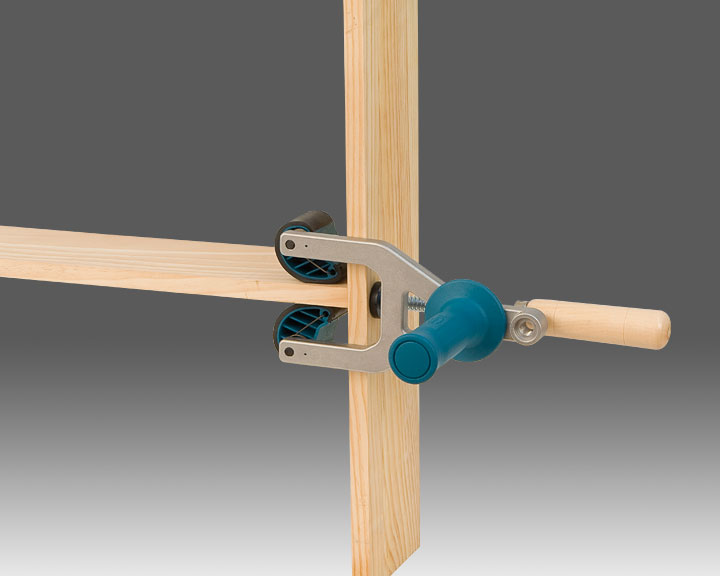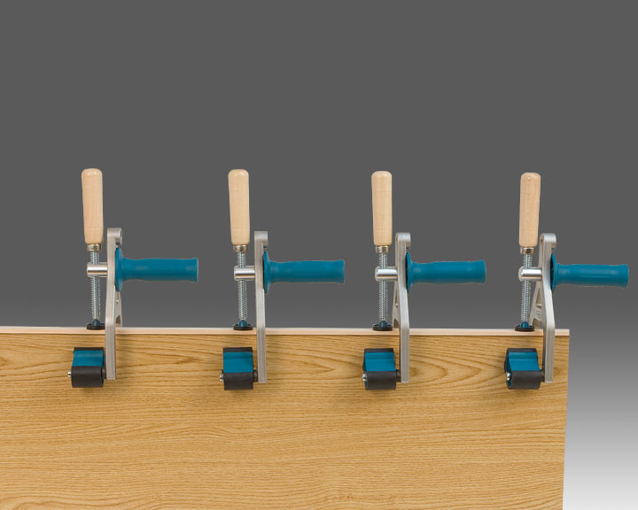 Solido corpo in alluminio, provvisto di ganasce antiscivolo/antigraffio, per lavorare con pannelli delicati. Doppia funzione di fissaggio: per bordi e angoli