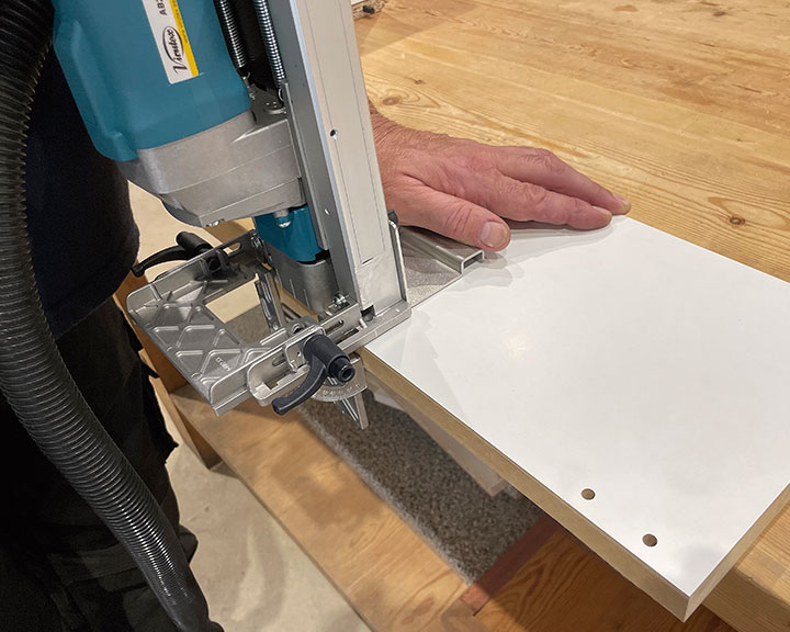Dotato di guida micrometrica regolabile a qualsiasi altezza e angolazione. Posizionamento della macchina tramite fermi a scomparsa e riferimenti visivi a 32 mm (standard).